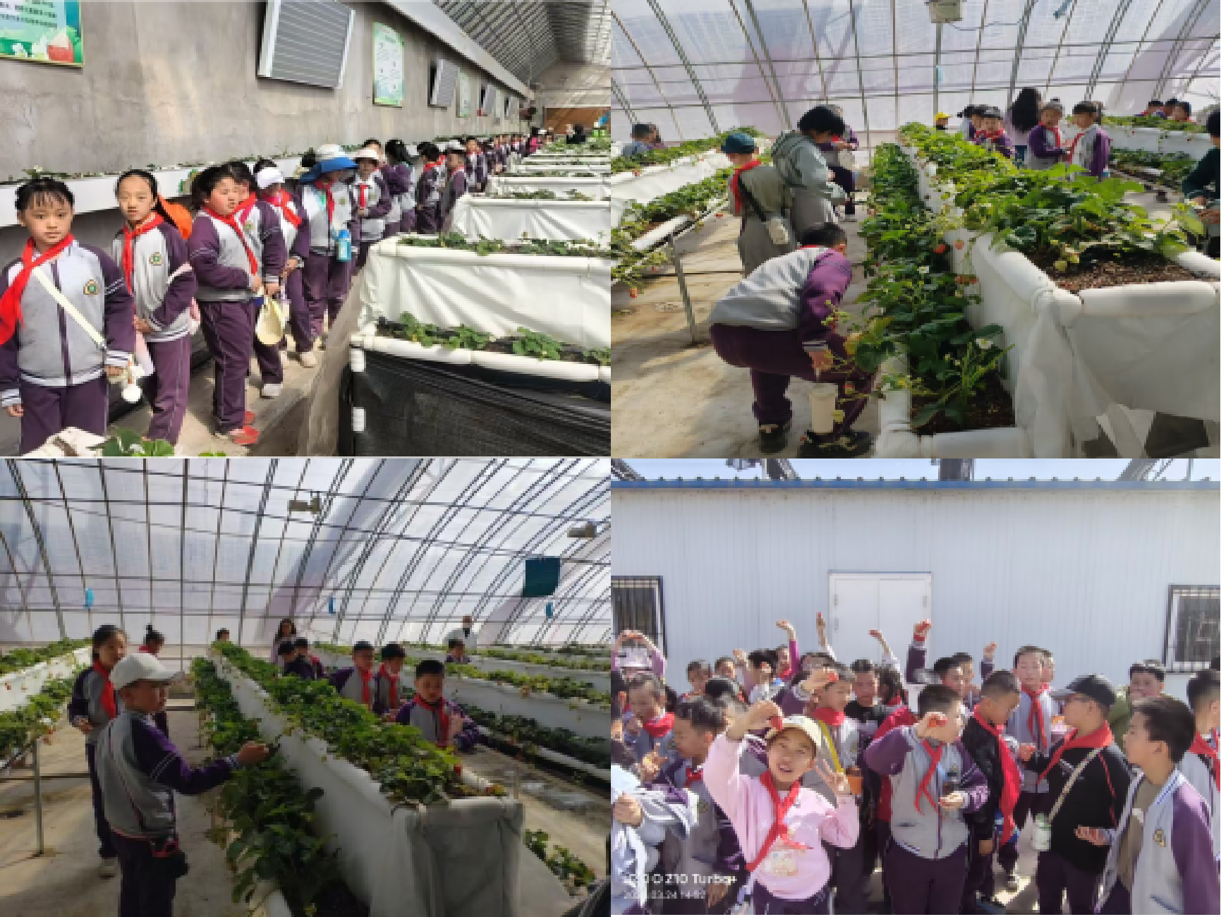 在设施农业大棚的草莓立体栽培区,学生们望着架上一串串红艳欲滴的草莓,纷纷凑近嗅闻果香,并摘下品尝,感叹科技‘喂’出的草莓真的不一样!