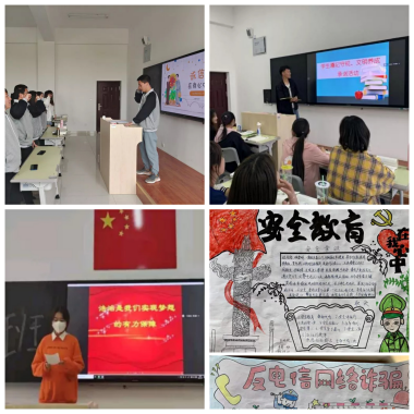 安全教育伴我行,形式多样重效果。为保障同学们的人身财产安全和心理健康,维护学校正常的教学、科研及生活秩序,营造和谐的校园文化环境。学院团委通过采取线下班会或线上会议的形式,围绕“网络安全”、“疫情防控”、“防范诈骗”、“消防安全”“心理健康”等内容开展了安全教育主题班会,并组织同学们就学习内容抒发自己的学习感悟。为了提高同学们的积极性,各班委采用了多种多样的教育形式,如观看安全教育视频、防诈骗宣传视频、分享安全教育经验等,得到了大家的积极响应。通过开展安全教育主题班会,同学们学习掌握了基本的安全知识,增强了自己的安全意识和自我保护意识。