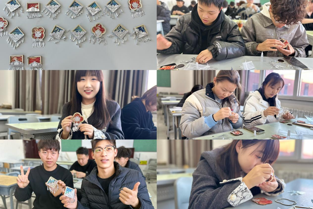 “银锦承韵”活动则聚焦苗族传统手工艺——苗银锻造与织锦技艺。学生通过装饰银片、操作织锦架,制作出兼具民族特色与现代审美的冰箱贴等小饰品。活动不仅锻炼了学生的耐心与专注力,更在纹样设计与色彩搭配中提升了审美素养与工匠精神。
