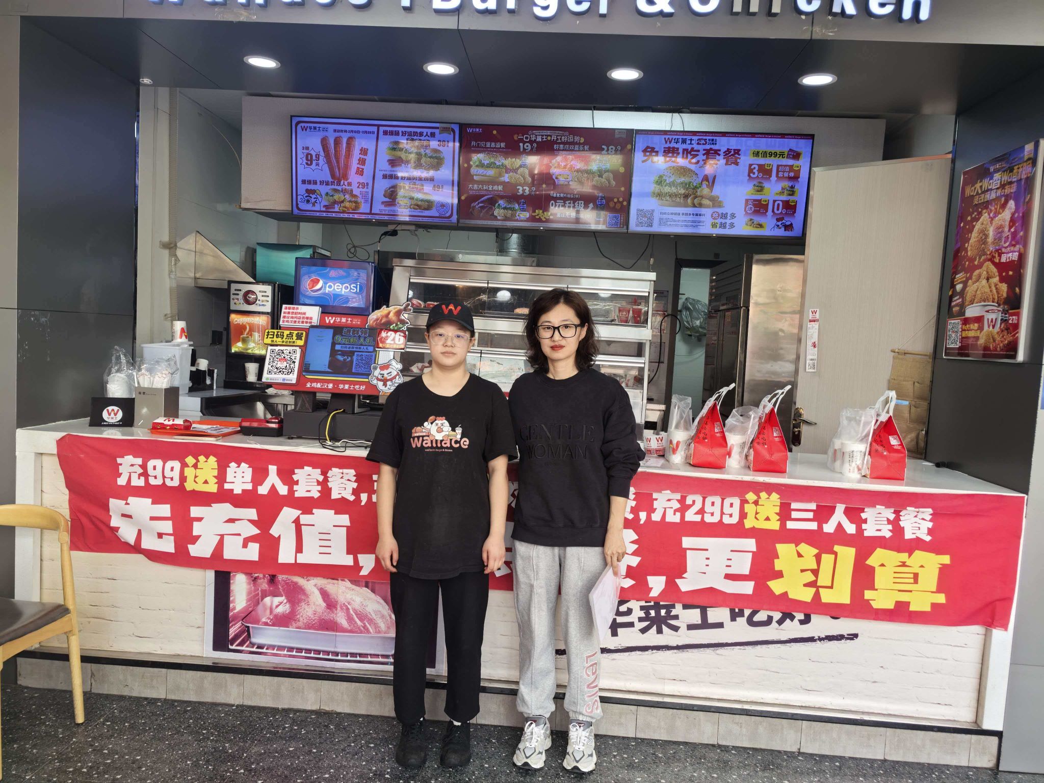 在华莱士炸鸡汉堡门店,马海燕老师关切询问了学生的实习情况、工作强度与生活状况,强调要注意上下班途中的交通安全,合理安排作息,避免过度劳累。结合餐饮连锁行业的发展趋势,老师鼓励学生积极学习店面管理知识,积累运营经验,无论是未来晋升管理岗位,还是自主创业,都要注重服务质量与品牌意识的培养。