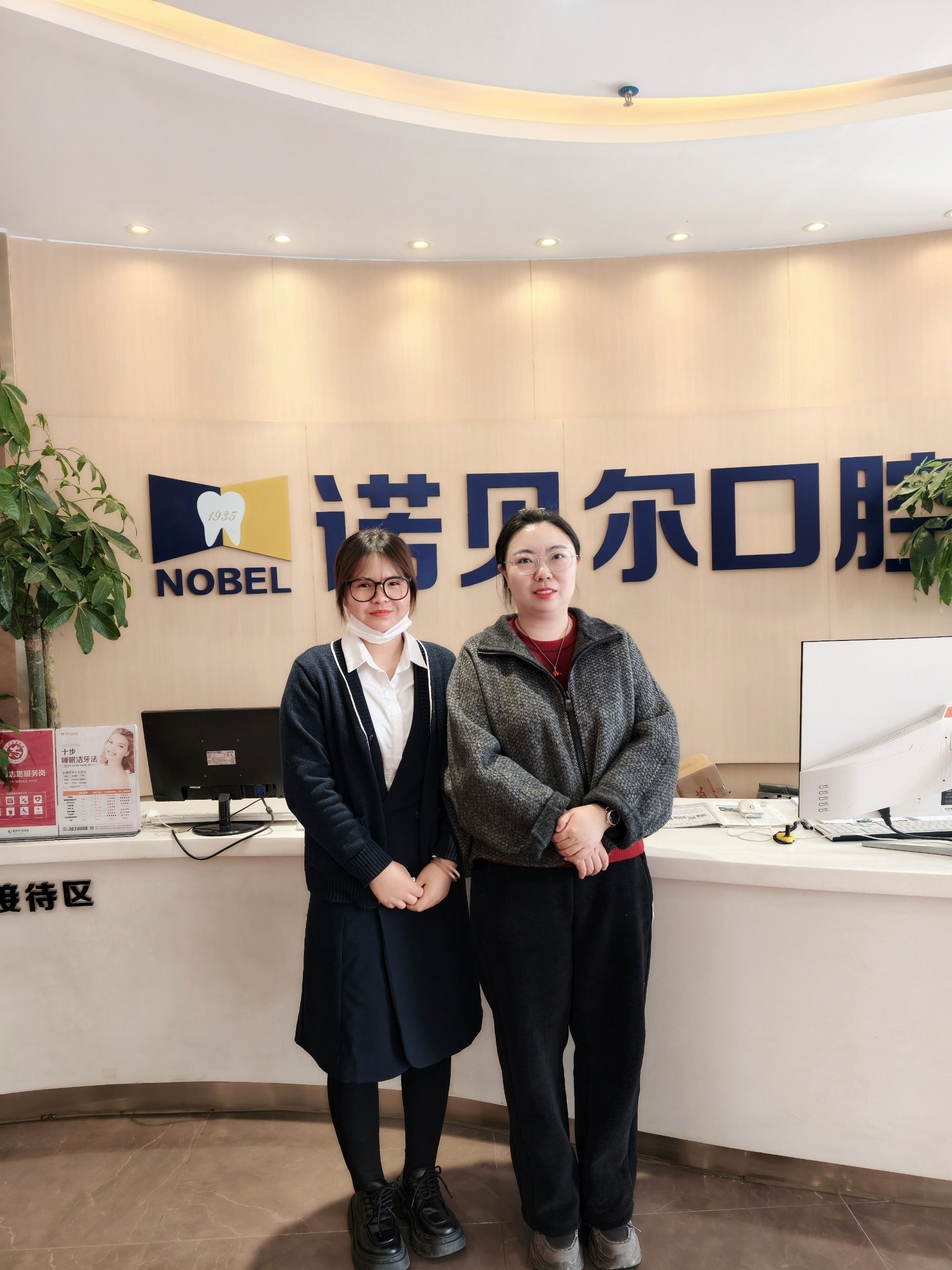 在宁夏诺贝尔口腔门诊部,于群老师仔细地了解了学生的岗位工作内容和上班时间、工资待遇、食宿待遇等。学生岗位是前台和就诊引导,针对岗位特点,老师指导学生如何与患者沟通,强调沟通能力直接影响患者体验,建议学生在实践中总结沟通技巧,注重细节服务,并提请学生注意口腔行业的职业暴露风险。